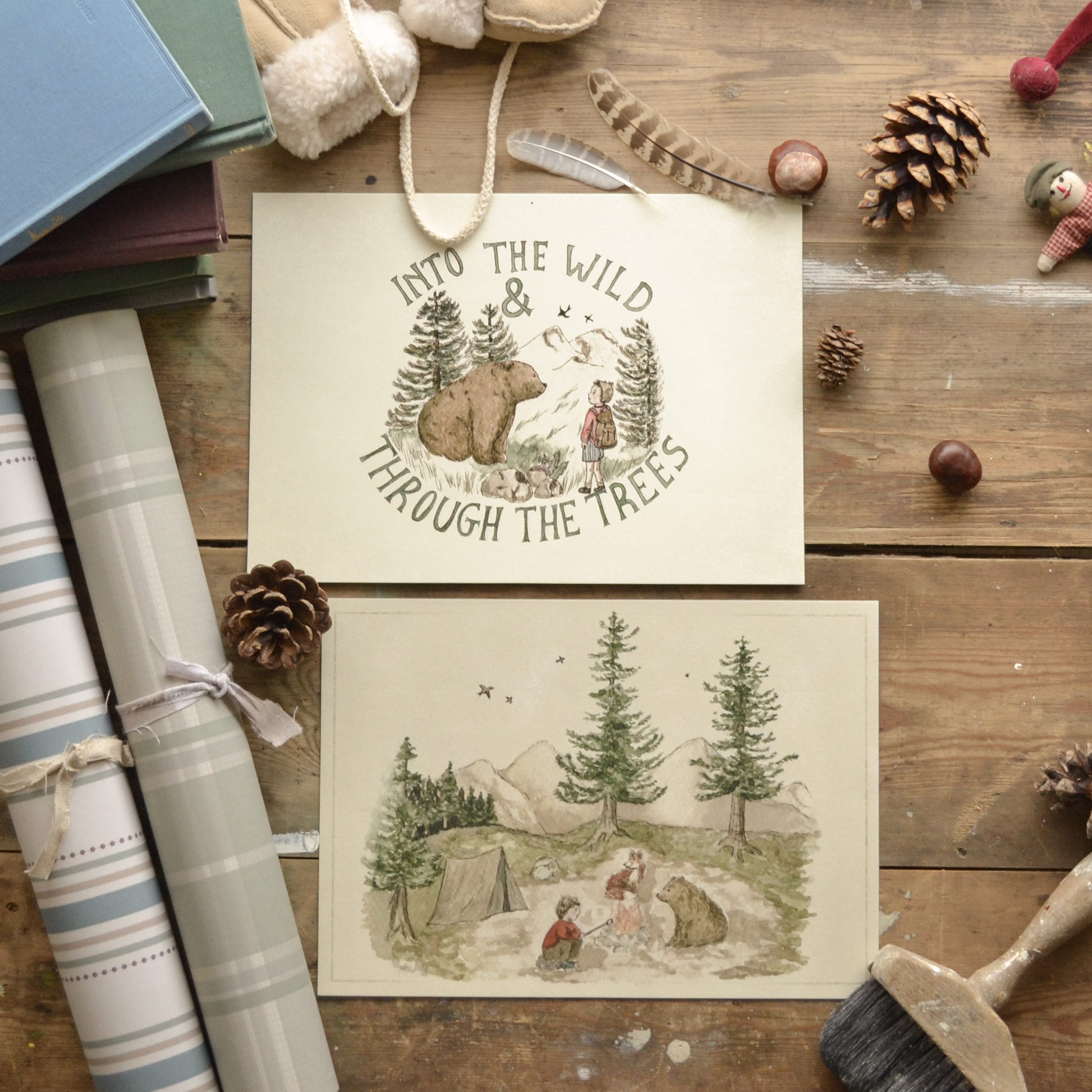 This hand-painted illustration of a boy, a bear and a fox around a campfire captures the magic of childhood exploration and the spirit of the great outdoors. Pairs perfectly with our other prints in our 'Into The Wild' range. Perfect for your child's room or playroom to spark their imagination and inspire stories of their own.