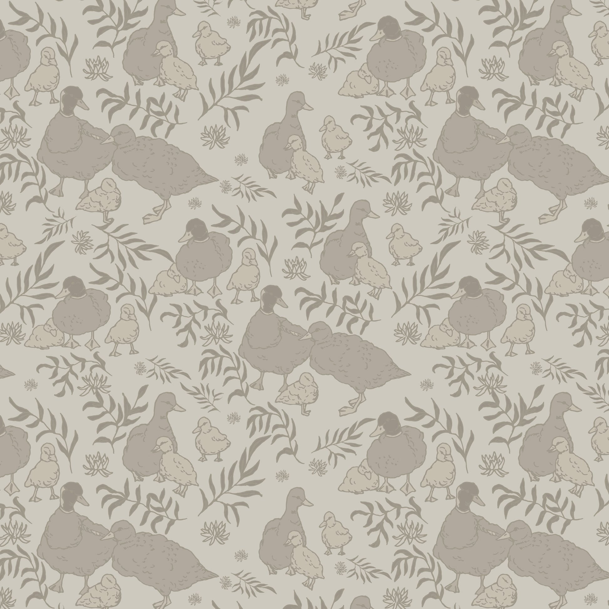 Wander into the quiet charm of the countryside with our Little Duck Family Wallpaper, hand-illustrated with a family of mallard ducks nestled among soft greenery. This softly muted pattern brings a sense of calm and innocence to a child's space.