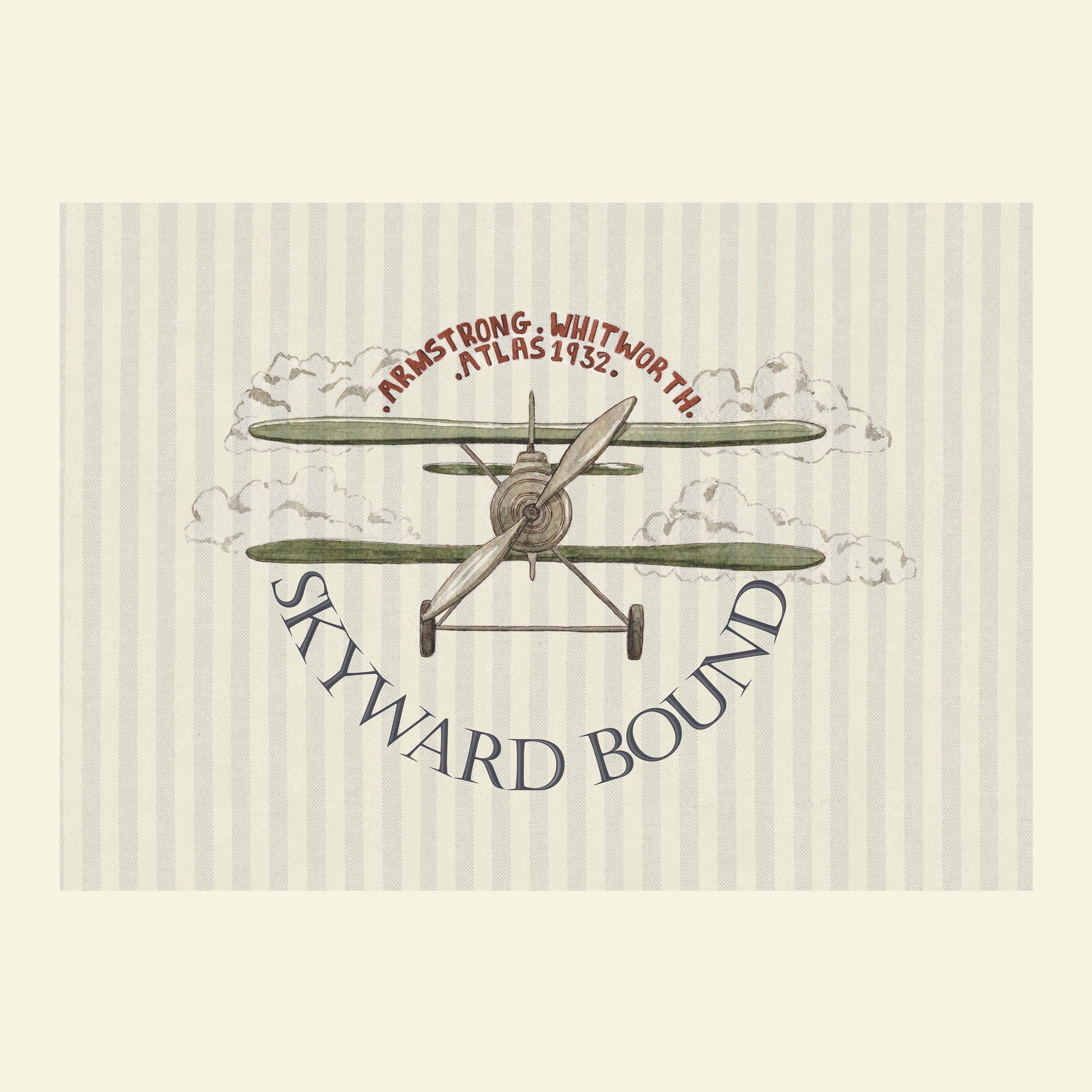 Add vintage charm to your child's bedroom with this hand-painted 1932 Airplane in muted khaki green on a soft tone striped background.