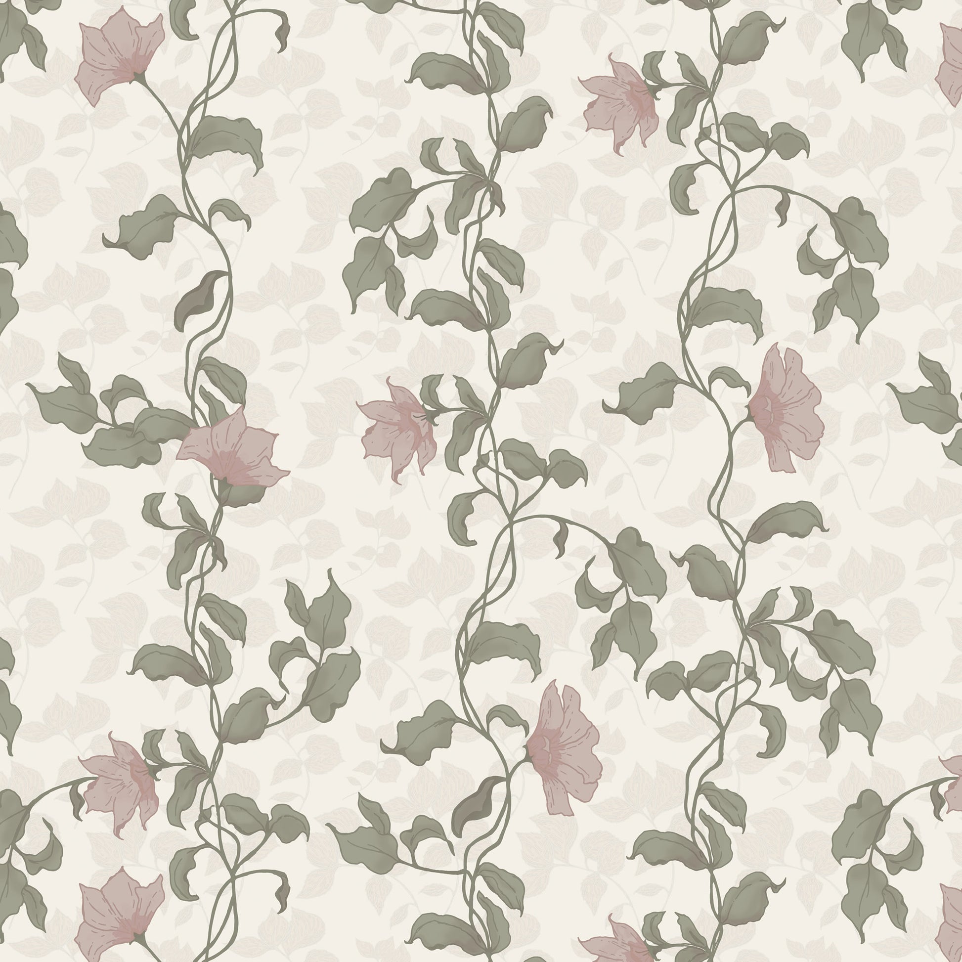 Bring the charm of an English cottage garden into your child's room with our 'Trailing Flora Wallpaper'. Delicate winding vines in a soft sage green, punctuated by dusty rose blooms that evoke a quiet, romantic elegance. The hand-drawn botanical design adds a timeless, vintage feel, perfect for creating a nature inspired fairy-tale haven.