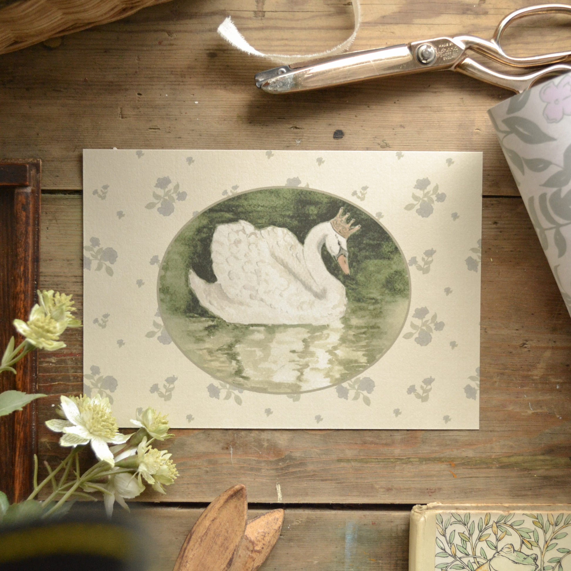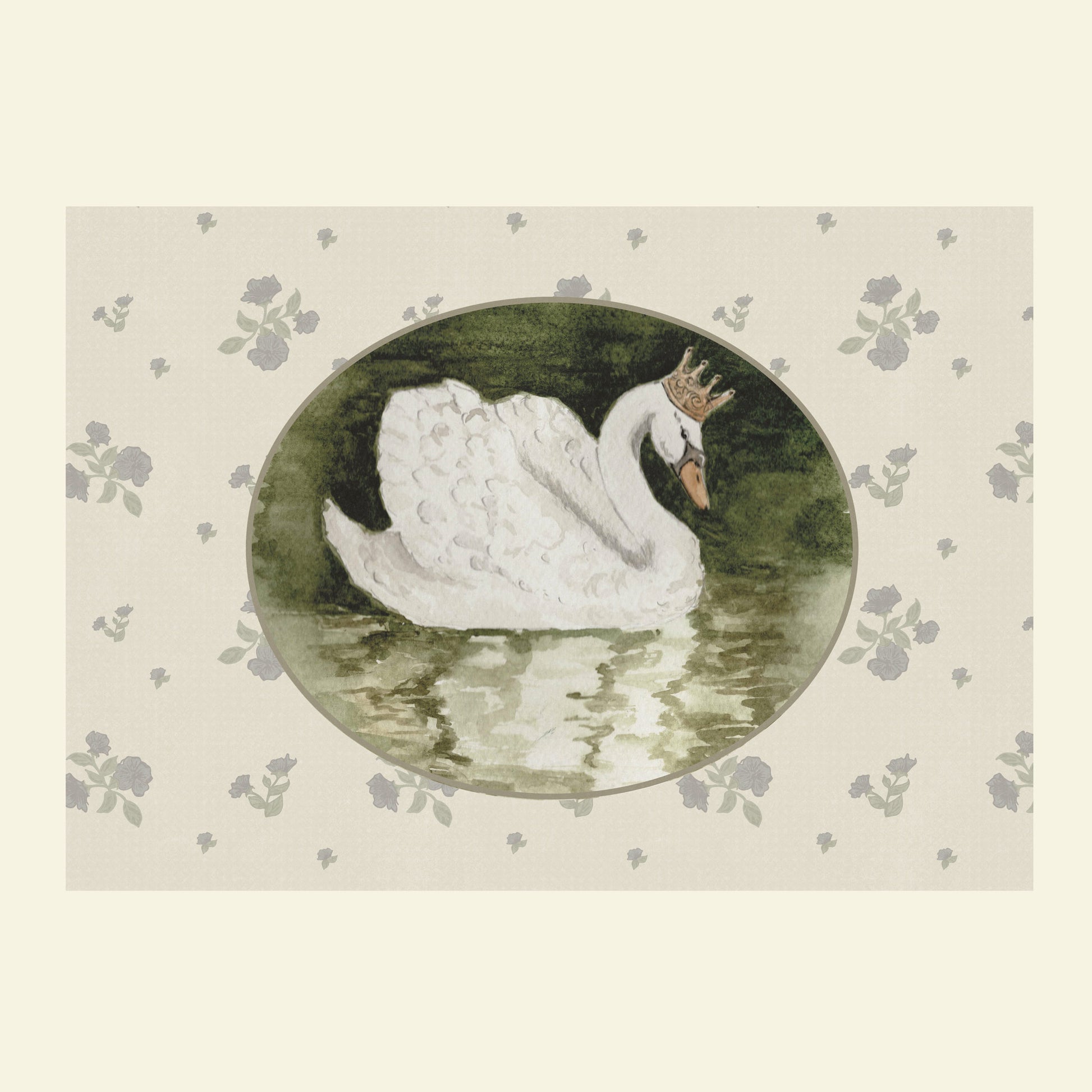 This hand-painted vintage style swan art print will add a touch of magic to a little girl's room. Featuring soft green, blue and cream tones it creates a feeling of calm in your space.