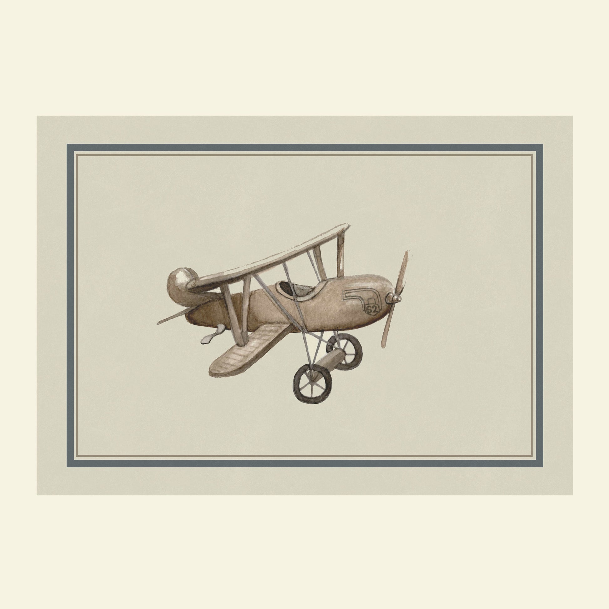 Bring timeless charm to your child's room with this vintage airplane print. Featuring a classic toy aircraft hand-painted in watercolour with muted tones. Perfect for creating an aviation-themed nursery or little pilot's bedroom.